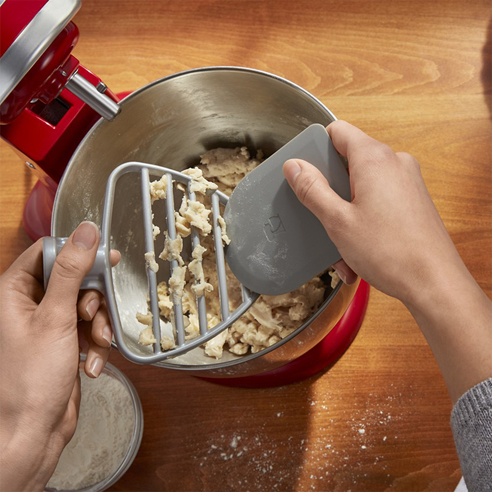 Prepara una masa de hojaldre con calidad artesanal, con menos esfuerzo, utilizando el Batidor de Pastelería KitchenAid. Este accesorio se adapta a las Batidoras KitchenAid Clásica y Artisan y se ha diseñado específicamente para la difícil tarea de cortar la mantequilla fría en la harina para obtener pasteles ligeros y hojaldrados. Además de cortar la mantequilla fría, este accesorio es ideal para acremar mantequilla. Incluye raspa de repostería: Retira rápida y fácilmente la masa del Batidor o Bowl y también es útil para cortar o dividir masa.